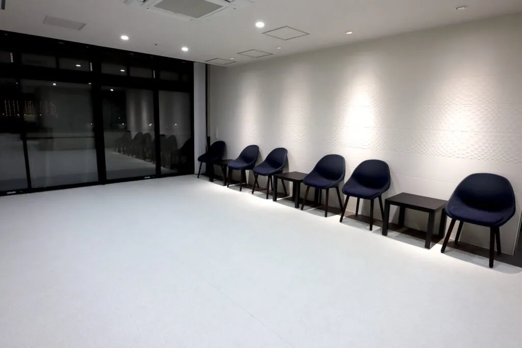 待合室は白を基調とした室内に、温かみのある色合いの長椅子を設置してあります。